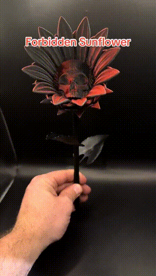 Each piece is 3D printed and hand-finished, making every bloom one-of-a-kind. The leaves are shaped individually after printing, so no two stems are ever alike. Bold colors, eerie design, and a gothic edge turn this sunflower into more than just décor—it’s a conversation piece that bridges life and death.